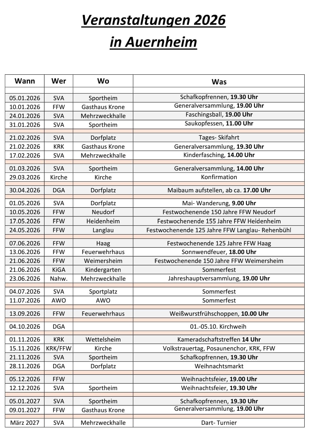 Veranstaltungskalender 2026